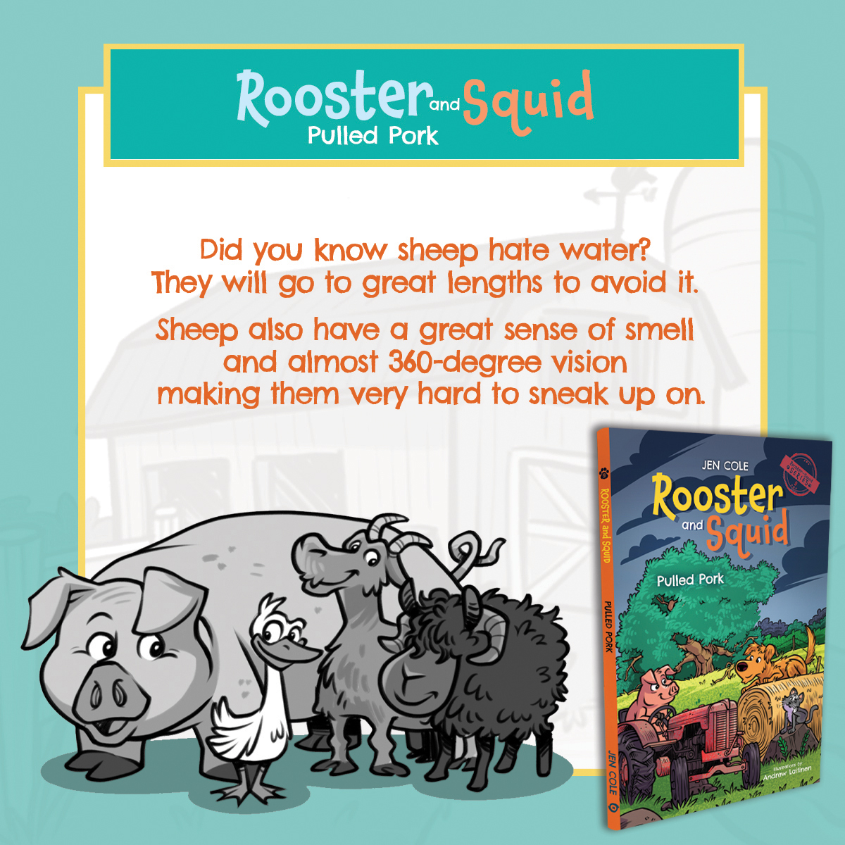 In the middle of all the mayhem, Wilson and Gen use their large animal skills to treat two sick horses, while Rooster and Squid make friends with a lazy pig, a diving duck, a hungry sheep, and a sleepy goat. Rooster and Squid also share tips about colic, corneal ulcers, and little-known facts about farm animals.